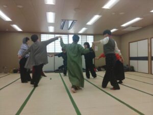 8人で輪になった舞では、隣の人から伝わってくる皆の動きの流れに乗りつつ自分も動きたいように舞っていると、全体で一つになったように感じとても心地が良く喜びに満ちていて、こうやって人生を生きていけば良いんだな、と頭で考えるのではなく肚に落ち、感覚的に理解が深まったように感じます。
